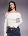 タイガーミスト レディース アウター ニット・セーター アシンメトリー リブ セーター Tiger Mist Keira bardot foldover ribbed trim asymmetric button detail sweater in cream CREAM クリーム