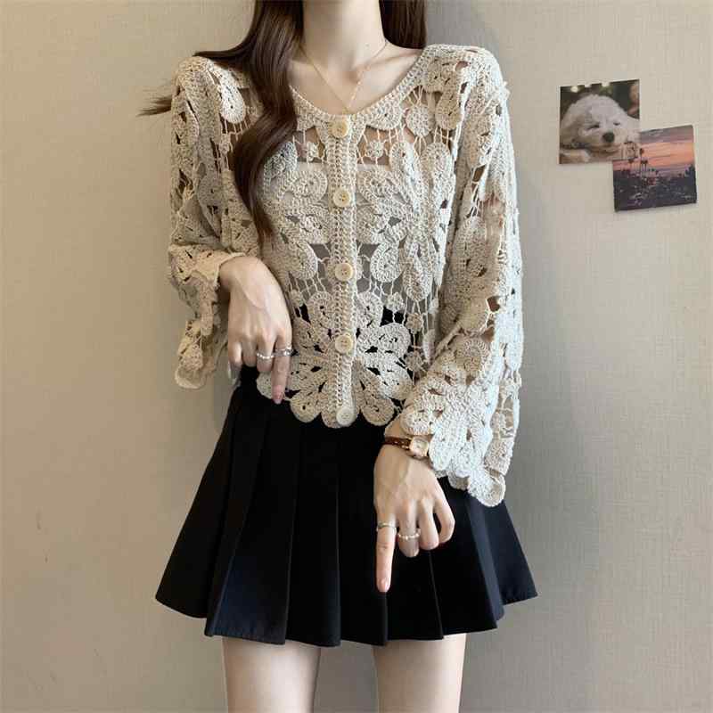 カーディガン レディース クロシェ編み ニット 薄手 透かし編み レース 花柄 レトロ クラシカル エスニック ゆったり リラックス 羽織り ショール ポンチョ ケープ チャイナドレス 羽織