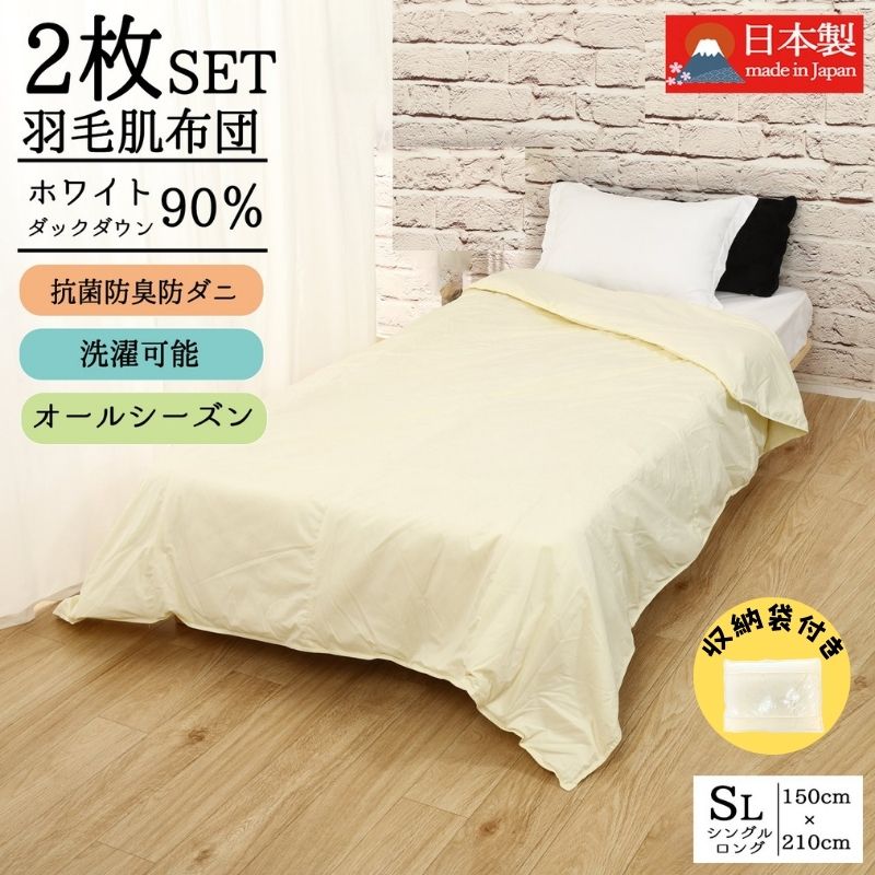 羽毛布団 夏用 送料無料 3年保証 2枚セット 選べる シングル 0.3kg 羽毛肌掛け布団 夏布団 洗える 薄い 夏 ダウンパワー350dp以上 ダウン90% 夏でも涼しい 国内洗浄 日本製 肌布団 ダウンケット プレゼント バイオアップ加工