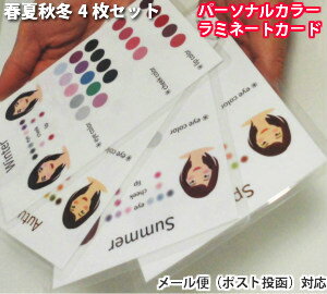 パーソナルカラー 色見本 光沢紙 ラミネート加工 葉書サイズ メイクカード 春夏秋冬 4枚セット