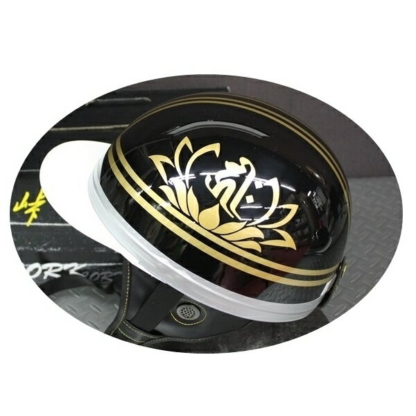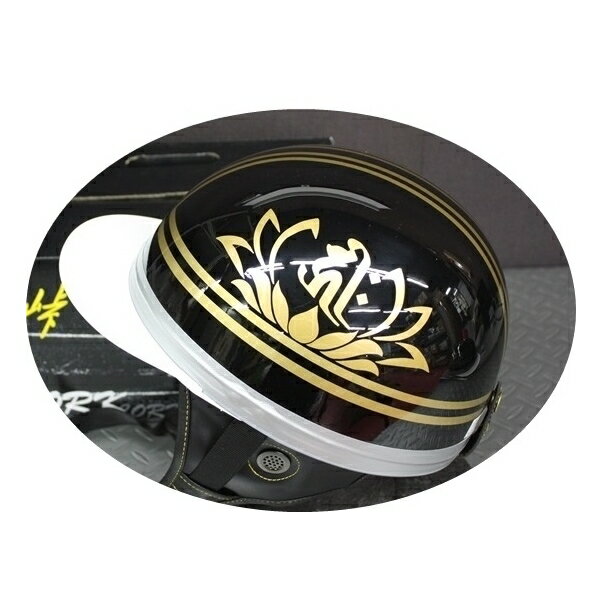 TNK TR-40C 峠 コルク半ヘルメット 旧車 ブラック/ゴールド 梵字【バン】 フリーサイズ 送料無料(代引不可)