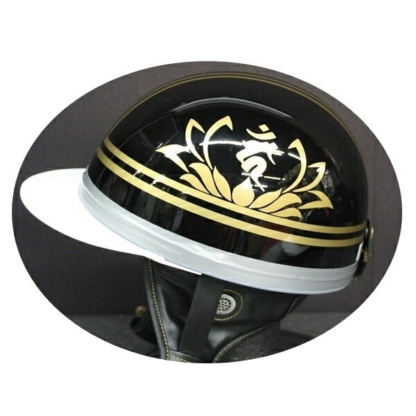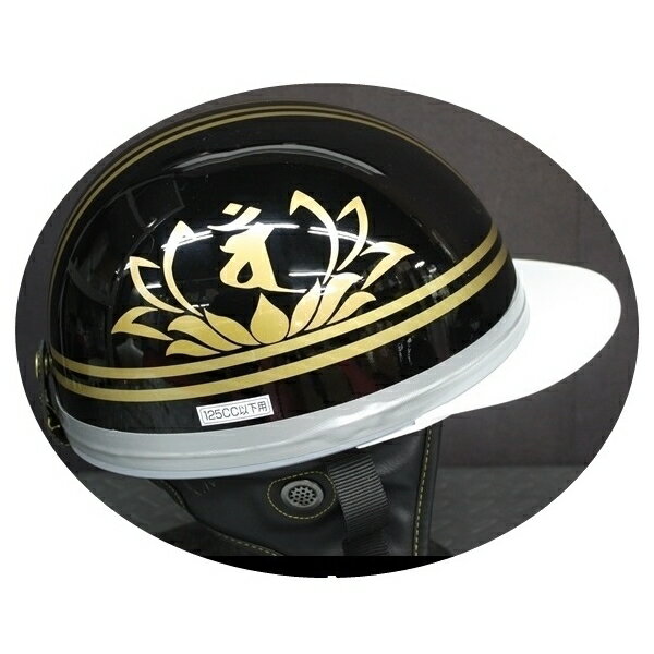 TNK TR-40C 峠 コルク半ヘルメット 旧車 ブラック/ゴールド 梵字【キリークNO2】 フリーサイズ 送料無料(代引不可)