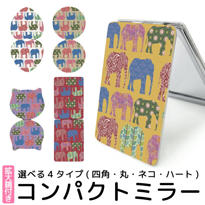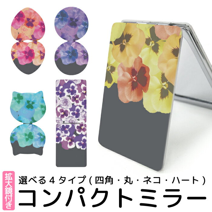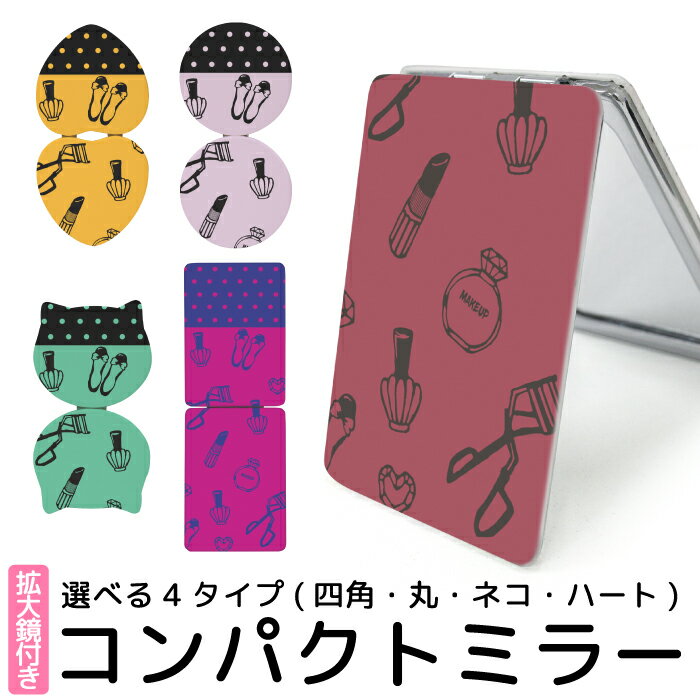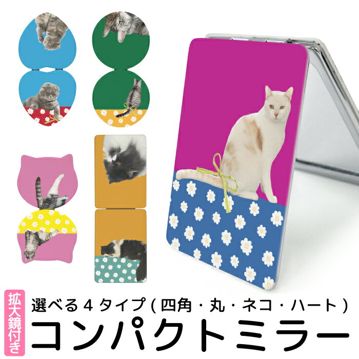 鏡 手鏡 コンパクトミラー 拡大鏡 拡大 小さい 可愛い かわいい デザイン 印刷 プリント 拡大鏡付き おしゃれ 折りたたみ 四角型 丸型 ハート型 ネコ型 猫型 ねこ型 kgm013