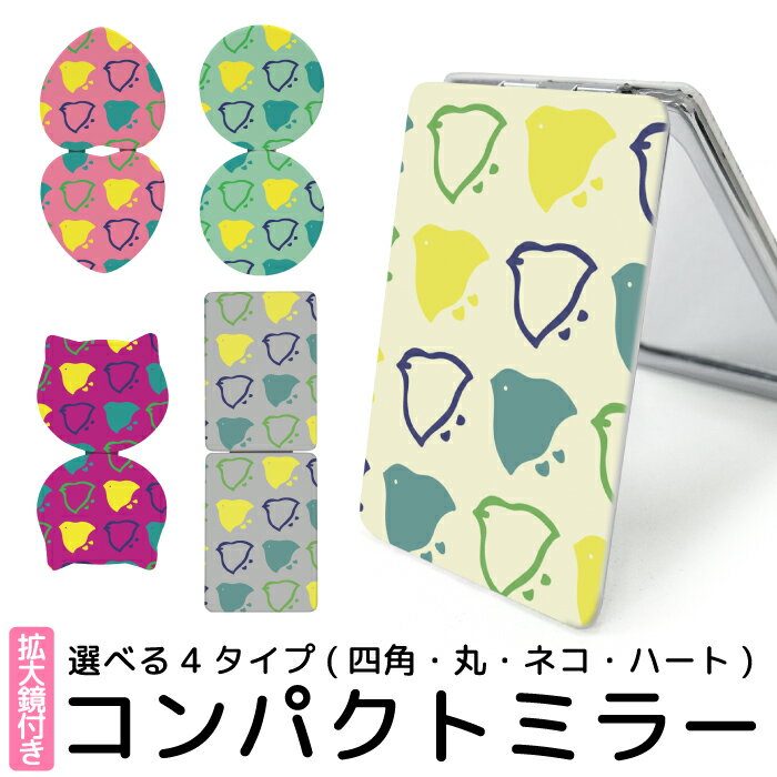 ミラー 鏡 コンパクト 手鏡 拡大鏡 可愛い 折りたたみ 可愛い 携帯 コスメ とり 鳥 小鳥 文鳥 猫型 丸型 ハート型 kgm059