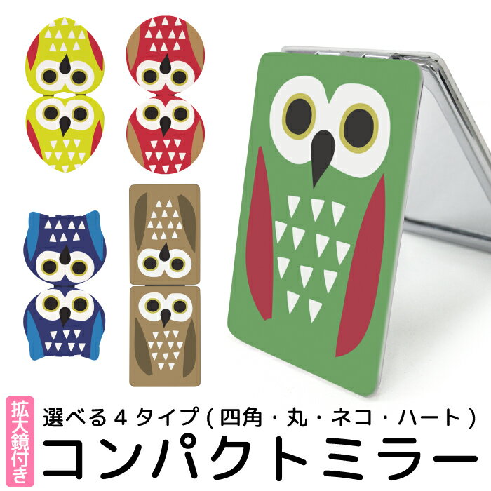 折りたたみミラー コンパクト 鏡 化粧直し用 手鏡 拡大ミラー かわいい おしゃれ ふくろう 北欧風 フクロウ 幸福 小さい 軽い 軽量 コスメ メイク用 化粧 雑貨 折り畳み式 かがみ メイク ミラー 携帯ミラー ハンドミラー コンパクトミラー 猫型 丸型 ハート型 kgm021