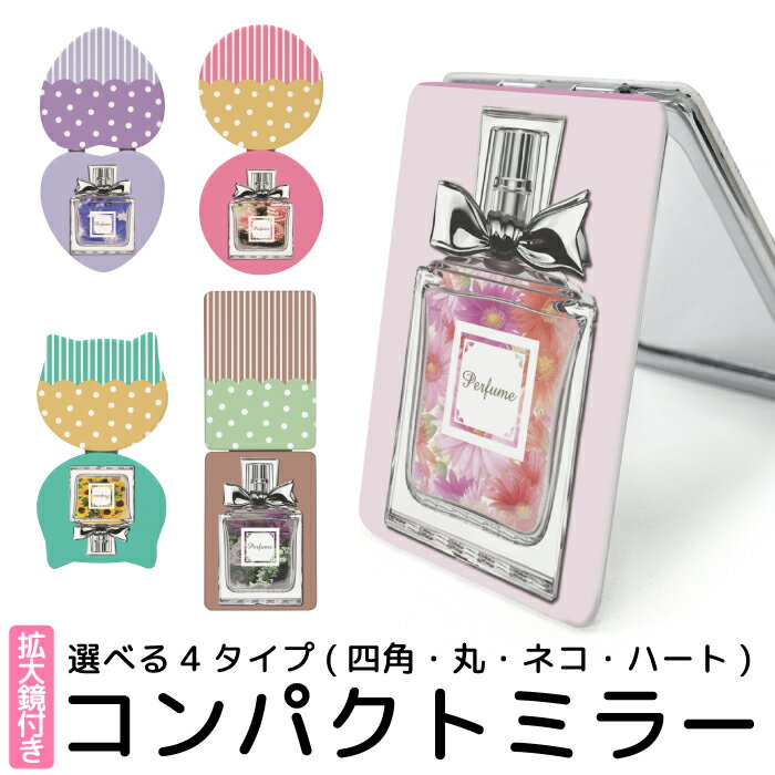 折りたたみミラー コンパクト 鏡 化粧直し用 手鏡 拡大ミラー かわいい おしゃれ パフューム 香水 瓶 香水 小さい 軽い 軽量 コスメ メイク用 化粧 雑貨 折り畳み式 かがみ メイク ミラー 携帯ミラー ハンドミラー コンパクトミラー 猫型 丸型 ハート型 kgm027