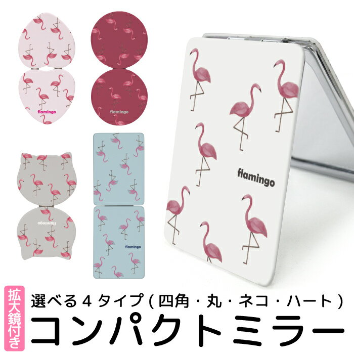 折りたたみミラー コンパクト 鏡 化粧直し用 手鏡 拡大ミラー かわいい おしゃれ 鳥 動物 ピンク フラミンゴ 小さい 軽い 軽量 コスメ メイク用 化粧 雑貨 折り畳み式 かがみ メイク ミラー 携帯ミラー ハンドミラー コンパクトミラー 猫型 丸型 ハート型 kgm043