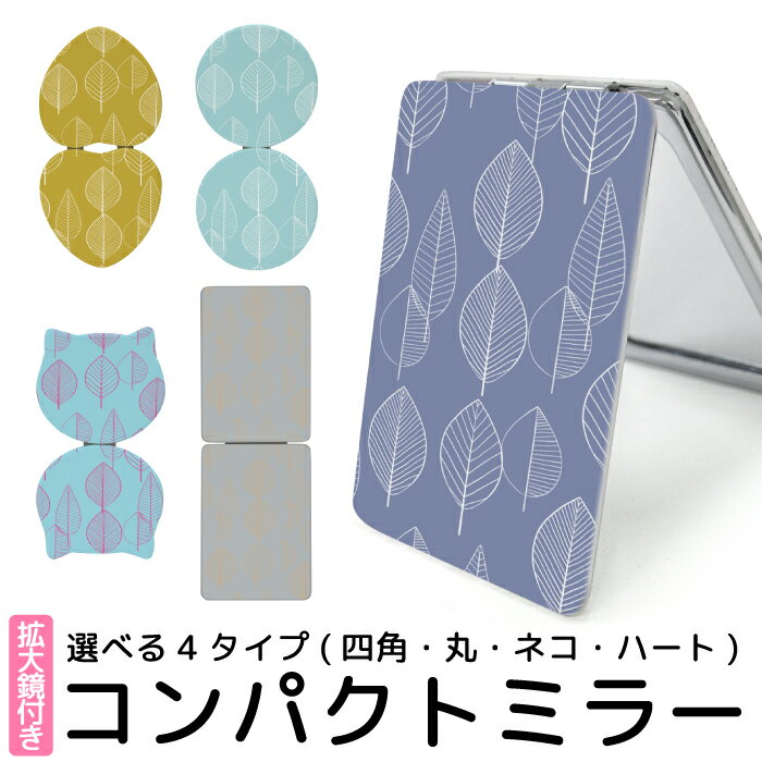 折りたたみミラー コンパクト 鏡 化粧直し用 手鏡 拡大ミラー かわいい おしゃれ 北欧 葉 葉っぱ 植物 小さい 軽い 軽量 コスメ メイク用 化粧 雑貨 折り畳み式 かがみ メイク ミラー 携帯ミラー ハンドミラー コンパクトミラー 猫型 丸型 ハート型 kgm045