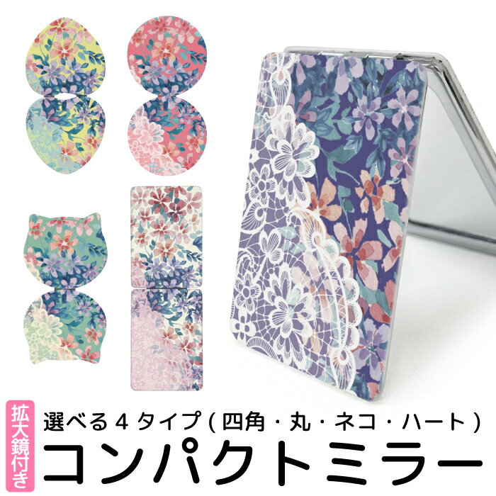 折りたたみミラー コンパクト 鏡 化粧直し用 手鏡 拡大ミラー かわいい おしゃれ 小花 フラワー お花 レース 小さい 軽い 軽量 コスメ メイク用 化粧 雑貨 折り畳み式 かがみ メイク ミラー 携帯ミラー ハンドミラー コンパクトミラー 猫型 丸型 ハート型 kgm047