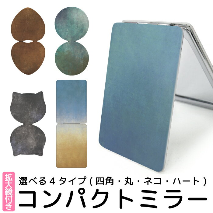鏡 手鏡 コンパクトミラー 拡大鏡 拡大 小さい 可愛い かわいい デザイン 印刷 プリント 拡大鏡付き おしゃれ 折りたたみ 四角型 丸型 ハート型 ネコ型 猫型 ねこ型 kgm012