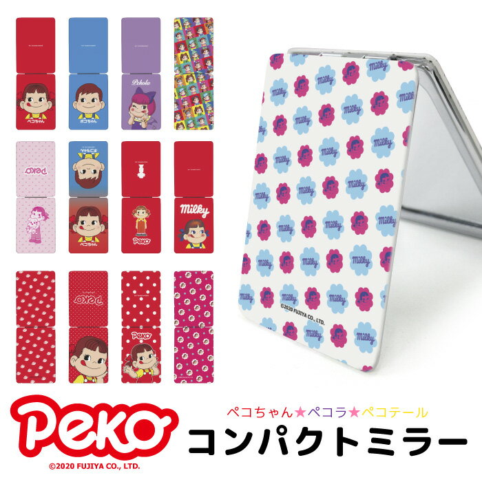 ペコちゃん コンパクトミラー 鏡 手鏡 拡大鏡 拡大 小さい 可愛い かわいい デザイン 印刷 プリント 拡大鏡付き おしゃれ 折りたたみ kgm038