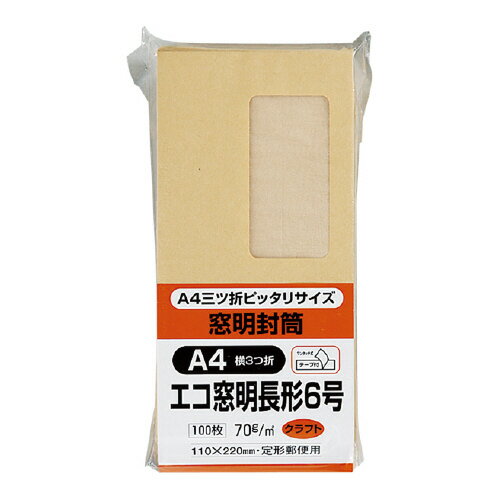 キングコーポレーション 長6窓明封筒 テープ付 長6 クラフト 70g/m2 100枚 N6KGM70Q グリーン購入法適応 ★10個パック