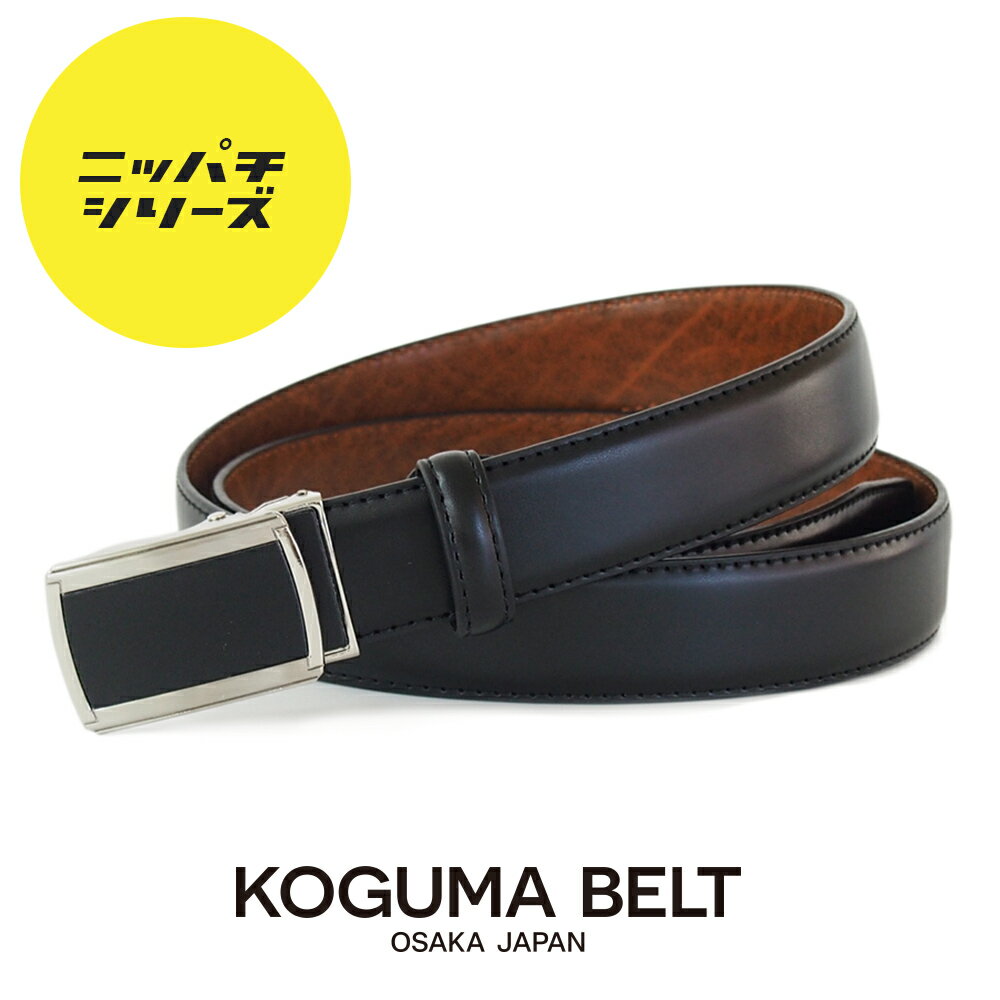 ベルト メンズ 本革ビジネスベルト 牛革 フィットバックル 無段階ベルト スーツ 紳士 30mm幅 フリーサイズ ブラック シンプル 営業 KOGUMA BELT コグマベルト KGMBB-0005
