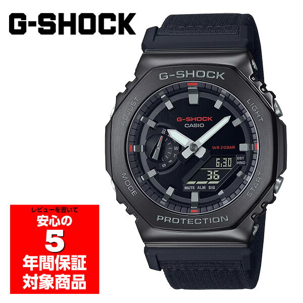 [当店5年間保証対象]G-SHOCK GM-2100CB-1A 腕時計 メンズ アナログ デジタル ブラック クロスバンド Gショック ジーショック カシオ 逆輸入海外モデル八角形フォルムのメタルカバードデザインが特徴のGM-2100に、クロスバンドを採用しました。メタルとクロスの異素材を組み合わせることで、洗練されたルックスにタフでカジュアルなイメージをプラス。更に、ブラック文字板と蒸着インデックスの質感の違いが高い視認性を実現しています。アウトドアテイストにクロスバンドのカラーリングが、コーディネートの幅を広げます。※本製品は、国内モデルGM-2100CB-1AJFの逆輸入海外モデルです。製品の機能、デザイン等仕様は国内モデルと同じです。基本情報・ケースサイズ(縦 × 横 × 厚さ):55.2 × 53.5 × 18.2 mm・質量:93g・ケース/ベゼル材質:樹脂/ステンレススチール・バンド:クロスバンド・構造:耐衝撃構造(ショックレジスト)カーボンコアガード構造・防水性:20気圧防水・電池寿命:約3年外装・風防:無機ガラス・装着可能腕回りサイズ:14.5-21.5 cm・ネオブライト時計機能・ワールドタイム:世界48都市(31タイムゾーン、サマータイム設定機能付き)+UTC(協定世界時)の時刻表示・ストップウオッチ(1/100秒(1時間未満)/1秒(1時間以上)、24時間計、スプリット付き)・タイマー(セット単位:1秒、最大セット:24時間、1秒単位で計測)・時刻アラーム5本・時報・ダブルLEDライト:文字板用LEDライト(スーパーイルミネーター、残照機能、残照時間切替(1.5秒/3秒)付き)、LCD部用LEDバックライト(スーパーイルミネーター、残照機能、残照時間切替(1.5秒/3秒)付き)・ライトカラー:ホワイト・フルオートカレンダー・操作音ON/OFF切替機能・精度:平均月差±15秒・12/24時間制表示切替・針退避機能(針が液晶表示と重なって見づらいときは、針を液晶表示の上から一時的に退避させることができます)付属品・G-SHOCKオリジナルBOX・説明書(ダウンロード用QRコード付き)・メーカー1年保証