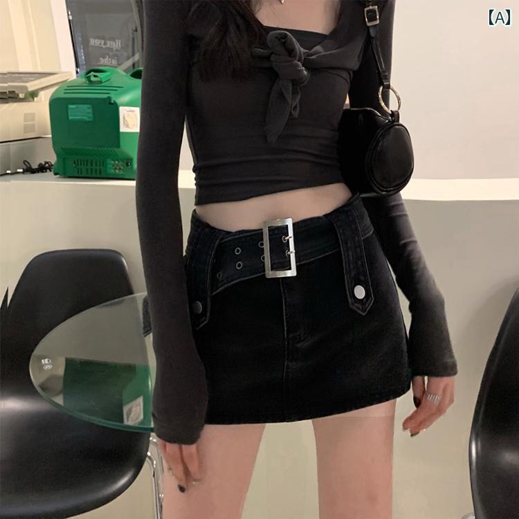 レディース スカート かわいい ブラックデニム スカート 太め mm 春夏 ハイウエスト ホット ガール ミニ aライン 大きいサイズ ヒップ パンツ