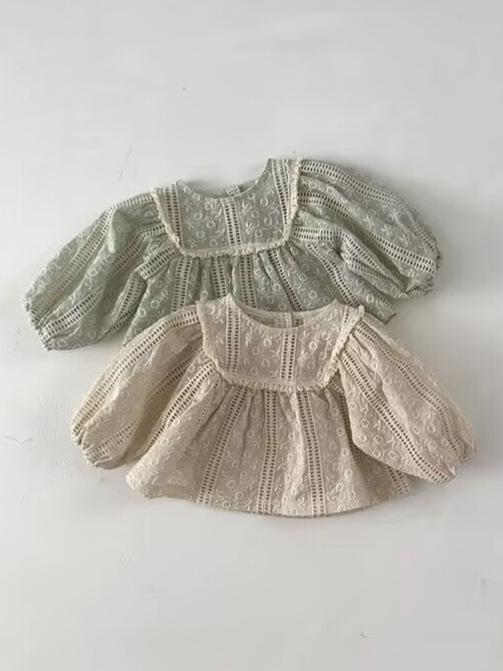 ベビー服 女の子 チュニック & パンツ セット 春秋 長袖 レース フリル 花柄 刺繍 韓国風 コットン 上下セット かわいい おしゃれ ベージュ 生成り ブラック レッド