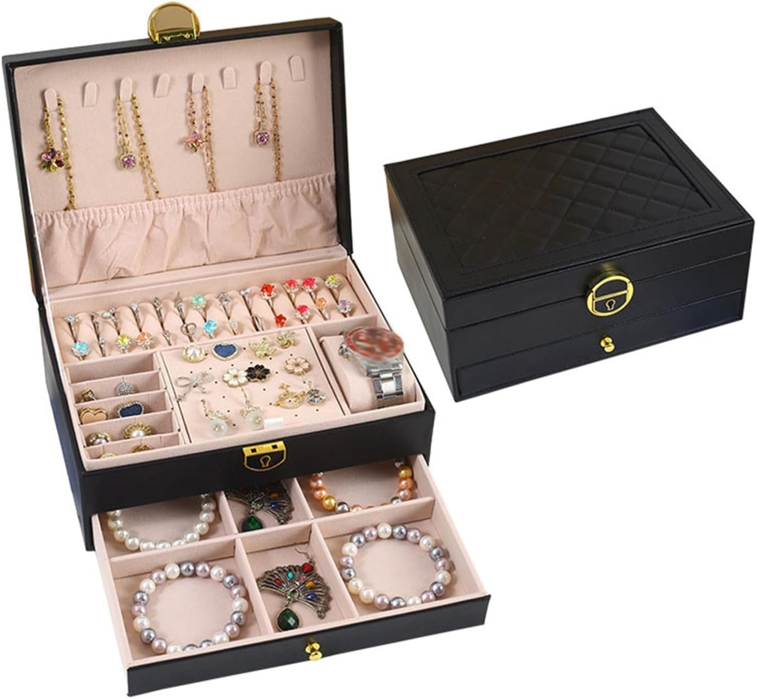 ジュエリーボックス アクセサリーケース ジュエリー収納 宝石箱 大容量 引き出し 鍵付き おしゃれ 小物入れ ピアス ネックレス リング 指輪置き 女の子 女性用 ブラック