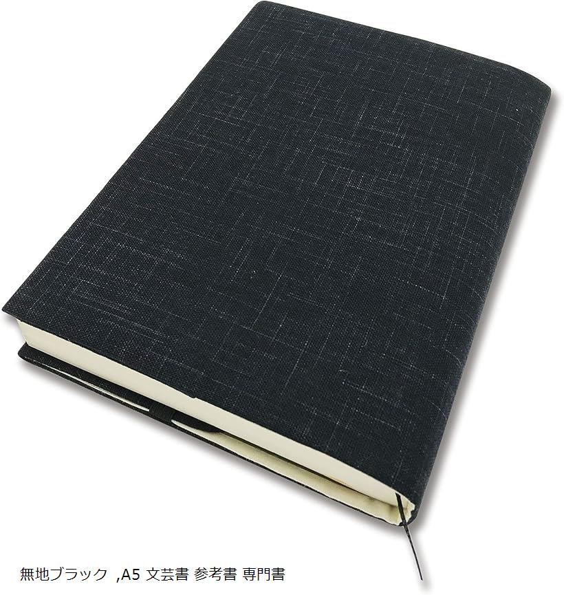 ブックカバー A5 文芸書 参考書 専門書 サイズ調整可能 読書 日本製 しおり付き 和雑貨 おしゃれ プレゼント(無地ブラック, A5 文芸書 参考書 専門書)