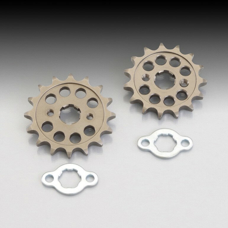 ■注意■この商品は下記となります。必ずご確認ください。丁数:15T■他の商品はこちらです丁数:16Tはこちら丁数:14Tはこちら※リンク先に商品がない場合、すでに完売している商品となります。予めご了承ください。■商品概要素材:S45C(高炭素鋼)サイズ:428レース専用推奨チェーンリンク数:428×110L■詳細説明チューニングエンジンに最適!サイズアップチェーンでメンテナンスサイクルを軽減!428サイズ対応ドライブスプロケット(14T)ラインナップ。ドライブスプロケットにはS45C(高炭素鋼)を採用。グロムの場合は、1サイズ上のドライブチェーンが使用可能になりますので出力を増大させたエンジンに対応。チェーンサイズを大きくする事で、耐久性を向上させ、メンテナンスサイクルを軽減できます。■注意点※428サイズの装着には428サイズのドリブンスプロケット及び、ドライブチェーンが必要です。※グロムに16T以上を装着する場合、ワイドチェーンガイドプレートが別途必要です。またノーマルの丁数以外に変えると、スピードメーター表示に誤差が発生します。その場合速度パルス変換ユニットをご使用ください。※スプロケットは消耗品です。※一般走行時を目安として約1000km走行ごとにスプロケットの点検を行って下さい。(歯先が細くなっている場合は新品と交換して下さい。日常の注油によりスプロケット及びチェーンの寿命は格段に向上します。)※リヤスプロケットT数÷フロントスプロケットT数=減速比この減速比の数値が大きい程加速重視型、少ない程最高速重視型と言えます。※グロムには428サイズのドライブスプロケットとドライブチェーンが必要です。※スーパーカブ110、クロスカブ110はノーマルチェーンが428サイズです。※スーパーカブ110/スーパーカブ110-プロ/クロスカブ110(ノーマル:14T)、グロム(ノーマル(420):15T)※ノーマル丁数に関しては適合表にて確認してください。※メーカー都合により商品の仕様変更がある場合がございます。ご了承ください。■適合車種スーパーカブ110 スーパーカブ110 備考: JA44/JA59スーパーカブ110-プロ スーパーカブ110-プロ 備考: JA42/JA61クロスカブ110 クロスカブ110 備考: JA45/JA60CT125ハンターカブ CT125ハンターカブ 備考: JA55/JA65モンキー125 モンキー125 備考: JB02 ※428サイズコンバート用ダックス125 ダックス125 備考: JB04/JB06 ※428サイズコンバート用グロム グロム 備考: JC61/JC75 ※428サイズコンバート用