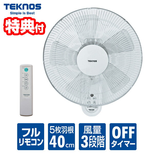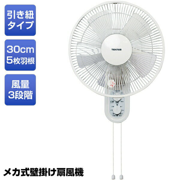 テクノス 40cm 壁掛けメカ扇風機 KI-W424 ホワイト 40cm 5枚羽根 [KIW424] 【暑さ対策/夏物家電/扇風機/季節家電/熱中症対策】