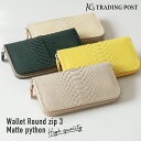 【KC,s】ケーシーズ ウォレット ラウンドジップ3 マットパイソン KIW038 財布 長財布 ラウンドジップ ロングウォレット 大容量 おしゃれ ブランド 日本製 レザー 本革 パイソンレザー ヘビ革 蛇革 メンズ レディース ペア お揃い 夫婦 カジュアル 男性 女性