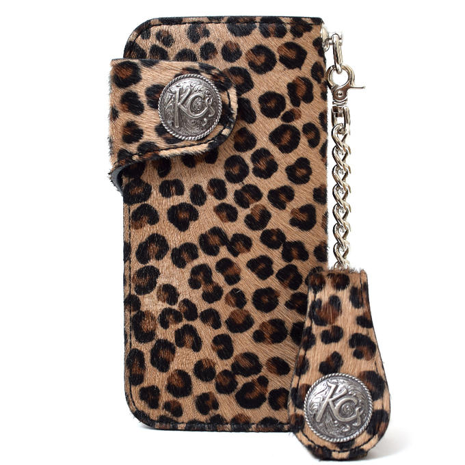 KC,s ケイシイズ 財布 ライダース ウォレット0 ゼロ レオパード 牛毛皮 KIW518 ヒョウ柄 コンチョボタン式 春財布 長財布 革財布 バイカーズウォレット メンズ KC'S ケイシーズ ケーシーズ 日本製 本革 ブランド 優れものA