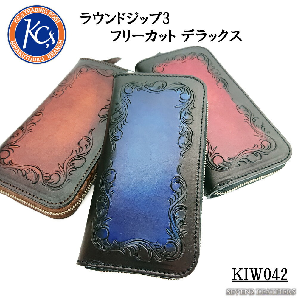 【レビューで無料メンテナンス】ケイシイズ ケーシーズ KC,s ラウンドジップ3 ロングウォレット フリーカット カービング レザーウォレット 本革 男女兼用 牛革 KIW042 【202401】