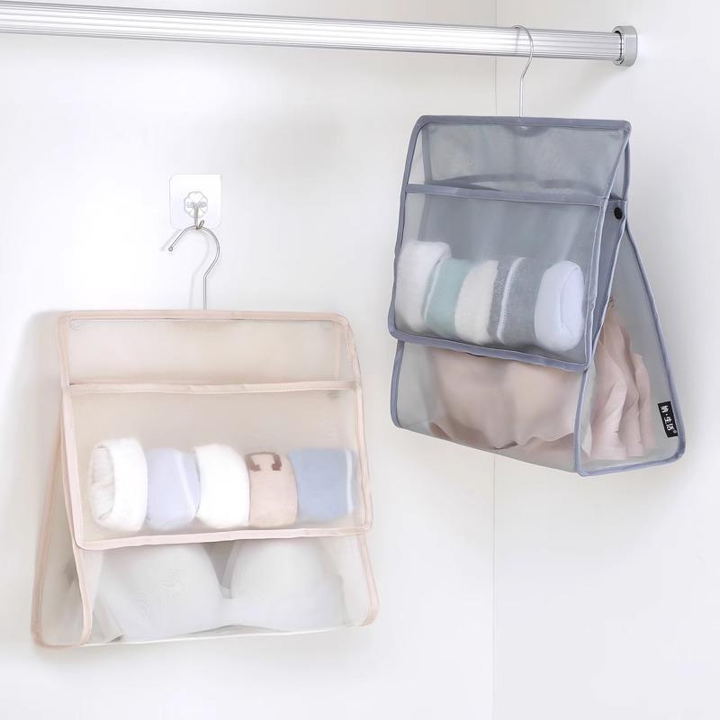 ウォールポケット クリア 透明 吊り下げ ドア 壁掛け ディスプレイ 収納 小物入れ クローゼット ハンガーフック メッシュバッグ 丸洗い可 靴下 下着 ホワイト グレー ブルー