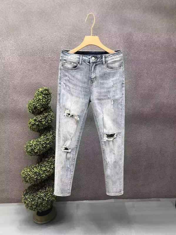 ジーンズ メンズ ダメージ加工 スリム ストレート デニム ウォッシュド ブルー 9分丈 男性用 スキニーパンツ スタイリッシュ カジュアル 春秋