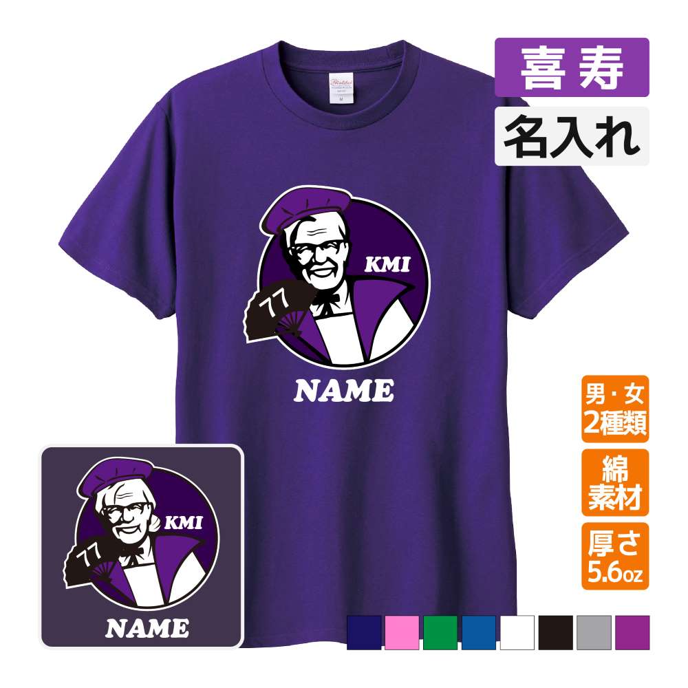 喜寿祝い プレゼント Tシャツ 名入れ無料【KFC風 KMI】パロディ 男性 女性 77歳 誕生日 お祝い 両親へ 孫から サプライズ Sサイズ Mサイズ Lサイズ LLサイズ 3L 4L
