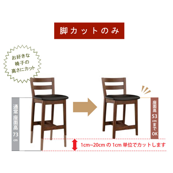 脚カットオプションのみ KMIシリーズハイチェアの脚カット 1cm単位でカット ※椅子本体は別売り QSM-60 MMK 家具