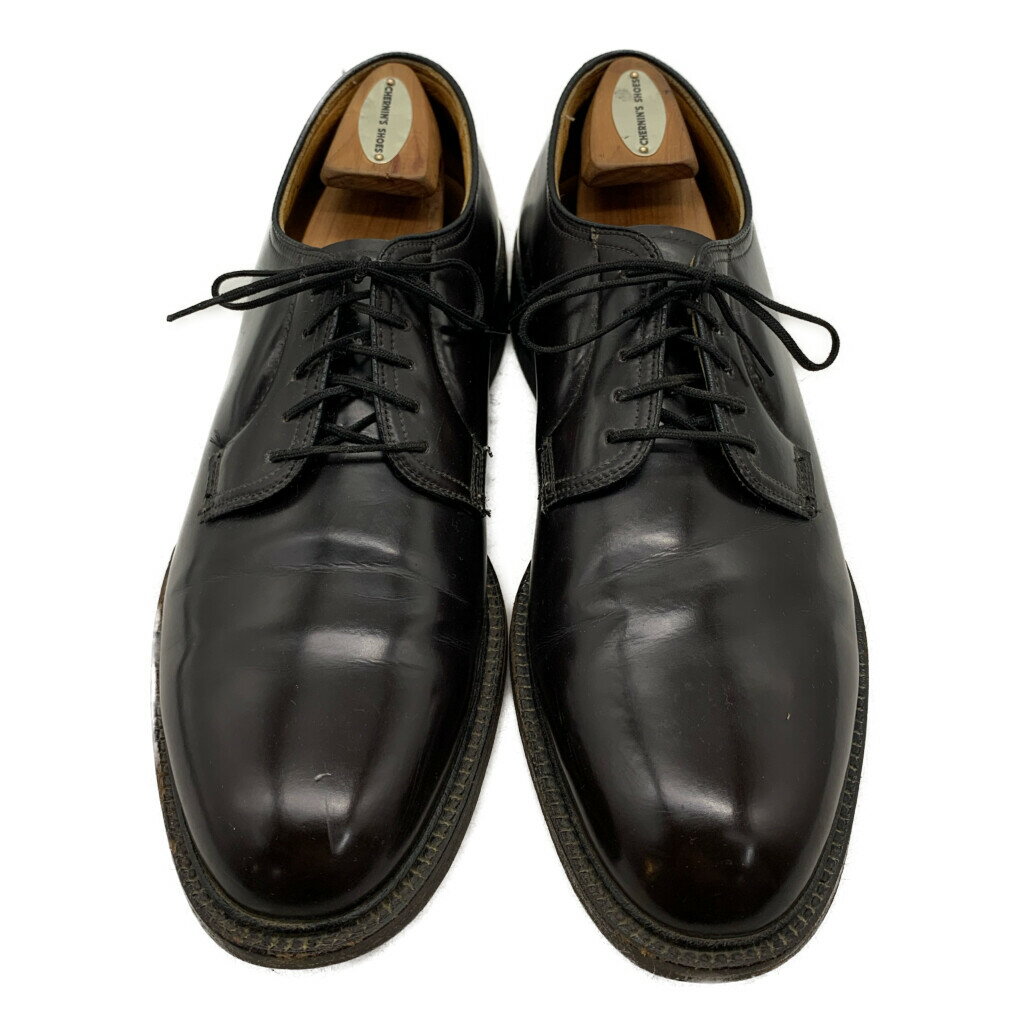 ■商品番号 D148-32-0060 ■商品名 70s-80s USA製 Knapp ナップ Uチップ シューズ 黒 28.5cm ブラック スプリットトゥ ビンテージ アメリカ製 大きいサイズ 靴 D148 ■生産国 アメリカ ■素材 アッパー:本革 ソール:本革 ヒール:ラバー ■SIZE 表記サイズ / 11-1/2 AA アウトソール全長 / 約32.1cm(爪先~踵まで) 最大幅 / 約11.0cm 参考サイズ / AAウィズと幅が細い作りの為、表記より小さく28.5cm程度の方がトゥに捨て寸を出して履けるサイズ感です。 ■商品説明 アメリカから買い付けたアイテムです。 1970~1980年代頃のKnapp(ナップ) Uチップ シューズ です。 1922年創業でMADE IN AMERICAのシューズを生産していたKnapp Brothers Shoe。 Mastercraftラインのクッション性の高いインソールとアーチサポート仕様です。 擦れや傷、履き口かかと部分に小さく裂けやヒビ割れ、トップリフトラバー縁に硬化があり、履くと欠けてくると思います。 使用感はありますが、支障をきたすダメージはありませんのでまだまだ履いていただけます。 希少なビンテージの一足です。是非ご検討ください。 ※箱はありません。また撮影時に使用しているシューキーパーは付属しません。