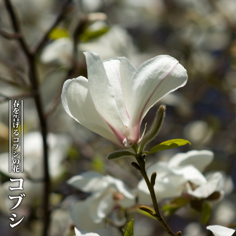 苗木部の配送料金についてこちらの商品の送料区分は・・・通常梱包(宅配便)です。 ※送料は購入手続きにて配送先住所を指定した際に表示されます。※離島・一部地域は追加送料がかかる場合があります。送料についてはこちらお届けする商品について商品について商品は苗です。根鉢の部分も含め高さ約60cmです。根鉢の大きさは直径約10cmです。コブシの育て方植え方・用土基本的に植え付けは10月~入梅までに行います。寒い地方では春植えします。日当たりの良い水はけの良い肥沃な土壌に植えます。日当たりが悪いと美しい黄葉に出会えません。土質を選ばない丈夫な木ですが、花ひろば堆肥“極み”をよくすきこんだ土に浅めに植え付けします。成木の移植は難しいため、植え付ける場所は慎重に選びましょう。水やり乾燥した環境を好むため、最初の植え付け時を除木、地植えの際は基本水やりを行いません。肥料のやり方肥料は2月ごろに寒肥として油かすと腐葉土や花ひろば堆肥“極み”を株周りに穴を掘り与えます。剪定方法自然樹形を楽しむ樹木ですが、形を整えたい場合は、花後、新葉が出る前に剪定を行います。伸びすぎた枝や込み合った枝は、基部から2~3芽を残して、外側に向いている芽の上で切り取ります。枯れ枝や、枝の途中から出て真上に勢いよく伸びる徒長枝は、基部から切り取ってください病害虫の予防法病害虫はあまり心配いりません。露地植えして株が育つと虫がついたことはないですが、小さい苗など力不足の場合は虫がつくこともあります。発生したら消毒します。Magnolia kobusコブシ ポット苗ソメイヨシノより早く咲くコブシの花樹の形が美しく整うことから、庭木や街路樹として利用されます。シデコブシと比較して大きく育つため植栽スペースはしっかり確保しましょう。花だけでなく、枝葉にも芳香があり、折ったり燃やしたりするとより芳醇なレモンの香りが楽しめます。秋には短いながら黄葉を楽しめますが、なんといっても特筆すべきは、落葉期の見事な枝ぶりです。冬のはがない時期でも、力強い枝ぶりが楽しめますよ。”コブシ”の特徴学名Magnolia kobus モクレン科 モクレン属別名ヤマアララギ、コブシハジカミ、オマウクシニ、オプケニ、ヒキザクラ、ヤチザクラ、シキザクラ開花時期3月下旬~4月上旬花色・大きさ・花形純白・(8cm位)香りの強さ微香 レモン系最終樹高地植え:5m ~ 20m (落葉高木)栽培用途庭植え、公園木、シンボルツリー植栽適地日本全国育てやすさ ★★★★☆ 初心者におすすめ日照条件:日なた、耐寒性強い、耐暑性強い耐病害虫性耐病性:とても強い 害虫:普通につく花言葉信頼、友情