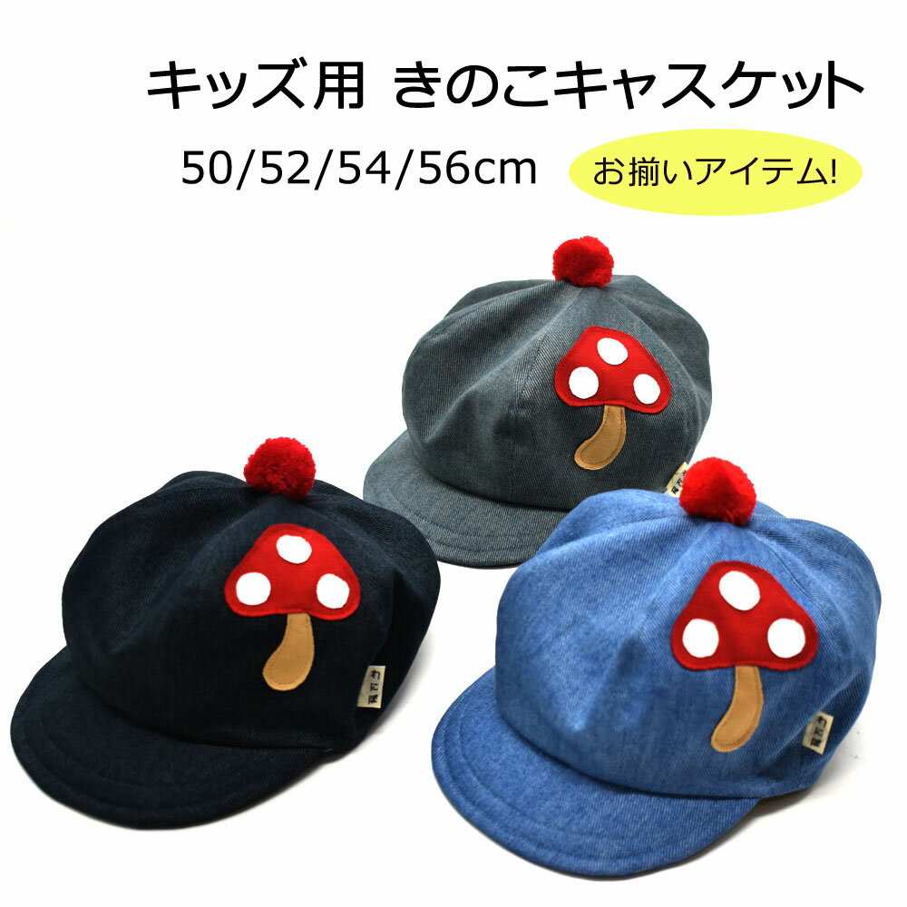 キッズ きのこのデニムキャスケット 保育園 安心素材 男の子 女の子 ペットお揃いアイテム ドッグ ペット オシャレ かわいい 贈り物 ギフト 国産 わにぽ 日除け ペットアイテム きのこ ベイビフェイス