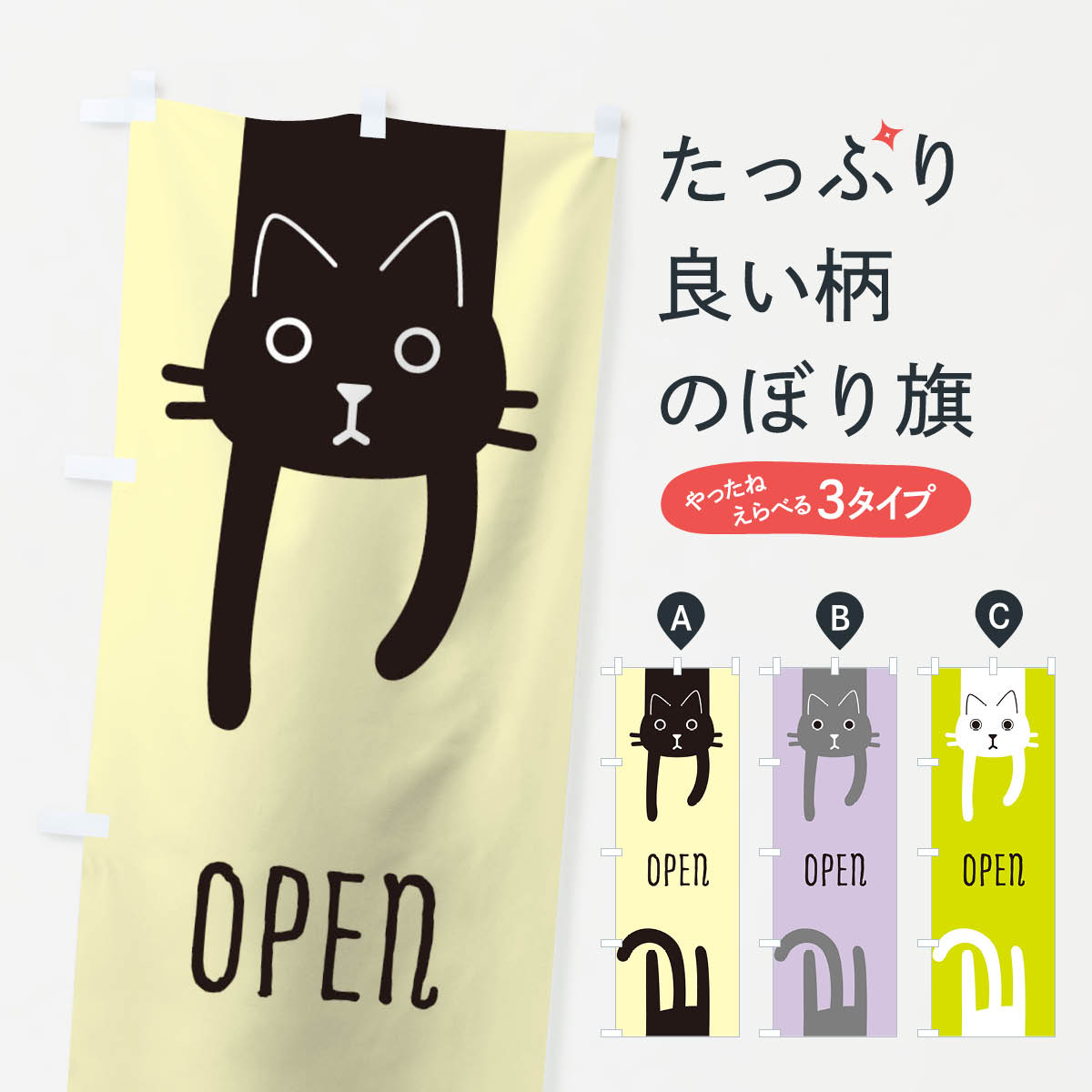 【ネコポス送料360】 のぼり旗 openのぼり 1URC ねこカフェ 猫 neko cafe ペットショップ オープン グッズプロ 【名入れできます+1017円】