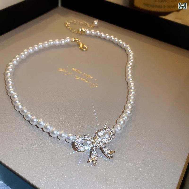 レディース チョーカー アクセサリー Shijia ボウ パールネックレス レディース 2024 新 ホット スタイル 鎖骨 ネックレス 軽量 高級 アクセサリー