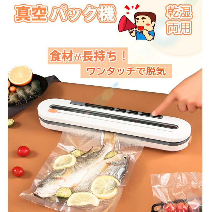 真空パック機 真空パック器 脱気シーラー シーラー 【吸引力60Kpa】 家庭用 業務用 真空 保存容器 密閉 密封 袋 保存 時短 調理 真空調理 便利 小分け 長期保存 フードシーラー 専用袋不要 真空保存 乾湿対応 外付け脱気