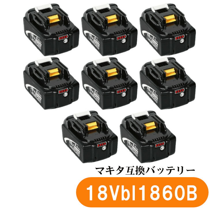 互換バッテリー マキタ 互換バッテリー 18v BL1860b 互換バッテリー 18V 6.0Ah 残量表示付(赤) 8個セット 充電器別売り