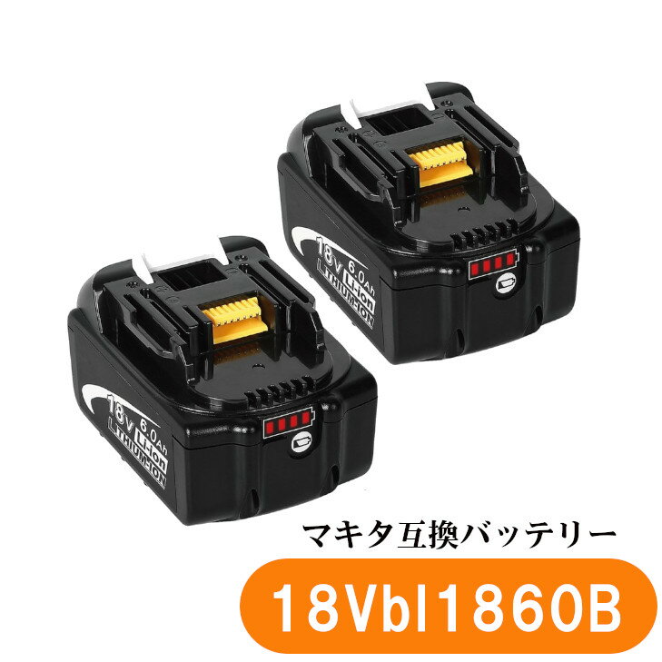 マキタ互換バッテリー 18v BL1860b 互換バッテリー 18V 6.0Ah 残量表示付 2個セット 充電器別売り