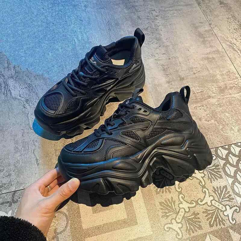 スニーカー メンズ レディース 厚底 ランニングシューズ クッション性 スポーツシューズ 運動靴 通気性 軽量 普段使い 部屋着 アウトドア 春夏秋冬 黒 ブラック 系