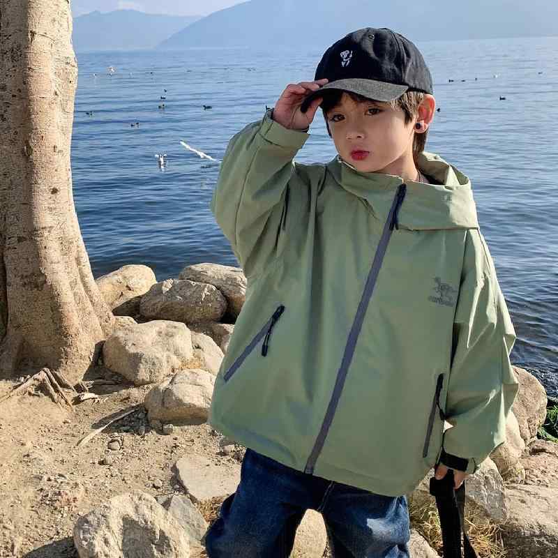 子供服 ジャケット キッズ 男の子 アウター 春秋 薄手 フード付き 防風 撥水 ボーイズ カッコいい カーキ ブラック 110cm 120cm 130cm 140cm 150cm 160cm
