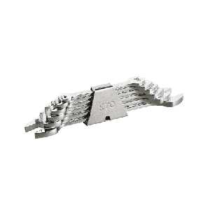 KTC(KYOTO TOOL) 京都機械工具 スパナセット [8本組] TS208●ヘッド部は幅を極力小さく、力の加わる部分にボリュームを持たせ、従来のやり形を進化させたKTC独自の新やり形ヘッドです。●柄は中央にくぼみをもたせ、握りやすく軽量かつ高強度を実現する断面形状です。●大きく見やすい鍛造浮き出しのサイズ表示です。