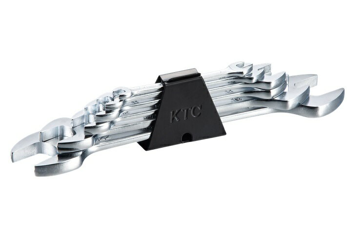 KTC(KYOTO TOOL) 京都機械工具 スパナセット [6本組] TS206A●ヘッド部は幅を極力小さく、力の加わる部分にボリュームを持たせ、従来のやり形を進化させたKTC独自の新やり形ヘッドです。●柄は中央にくぼみをもたせ、握りやすく軽量かつ高強度を実現する断面形状です。●大きく見やすい鍛造浮き出しのサイズ表示です。