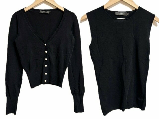 【中古】カルソン kulson アンサンブル ニット カーディガン XS パール調ボタン 黒 ブラック 長袖 ノースリーブ トップス レディース 【ベクトル 古着】 241219