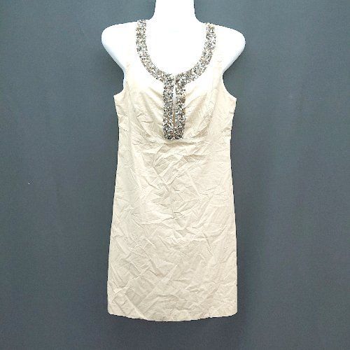 ◇ kulson カルソン 夏 スパンコール 上品 ジップアップ シンプル 無地 ミニ丈 ワンピース サイズ40 ベージュ レディース E 【中古】