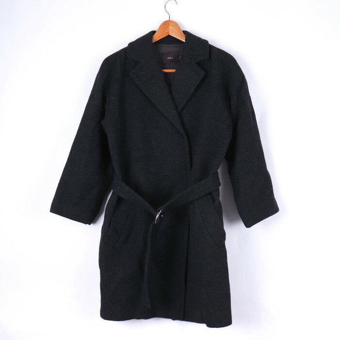 【全品39%OFFクーポン配布中】カルソン ガウンコート ロングコート ウエストベルト 無地 アウター ウール100% 伊製 レディース 36サイズ グレー kulson 【中古】