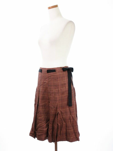 【中古】カルソン kulson スカート プリーツ グレンチェック リボン ひざ丈 40 赤 紫 茶 ボルドー レディース 【ベクトル 古着】 171006 ブランド古着ベクトルプレミアム店