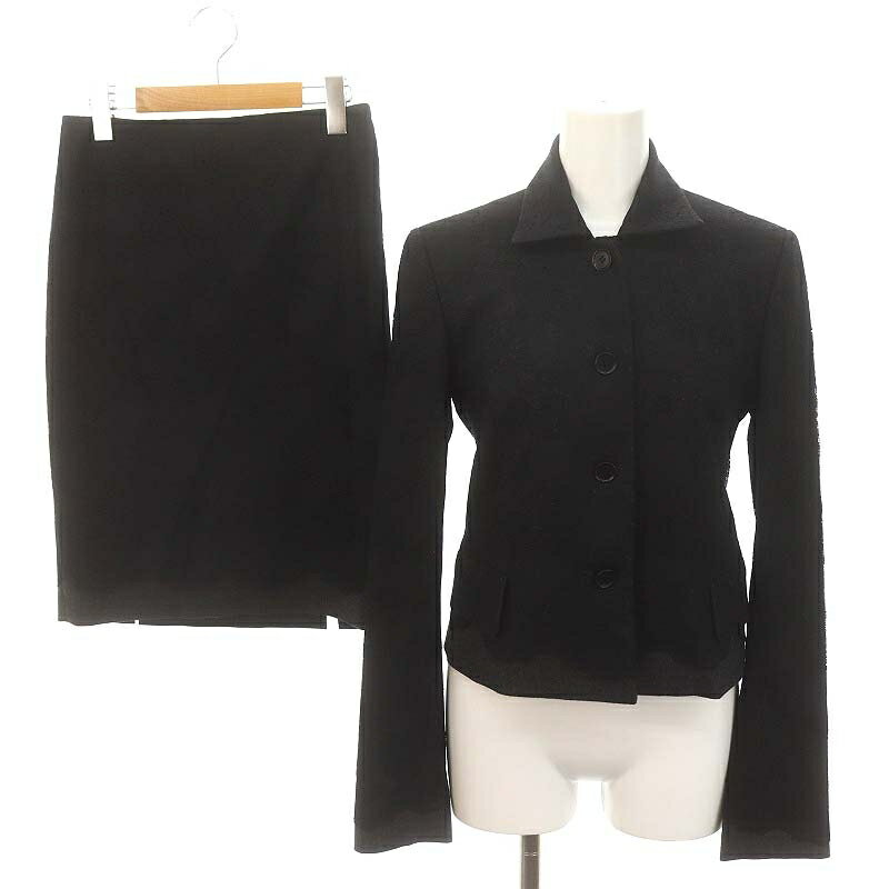【中古】カルソン kulson レースデザインセットアップ 上下 ステンカラージャケット 総裏地 タイトスカート 膝丈 36 黒 ブラック グレー /DO ■OS ■SH レディース 【ベクトル 古着】 240801