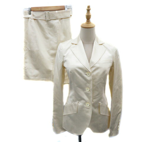【中古】カルソン kulson フォーマル セットアップ 上下 オープンカラージャケット ミドル丈 シングルボタン 総裏地 タイトスカート ひざ丈 シルク混 ウエストベルト付き 上38 下36 アイボリー /YK3 レディース 【ベクトル 古着】 250527