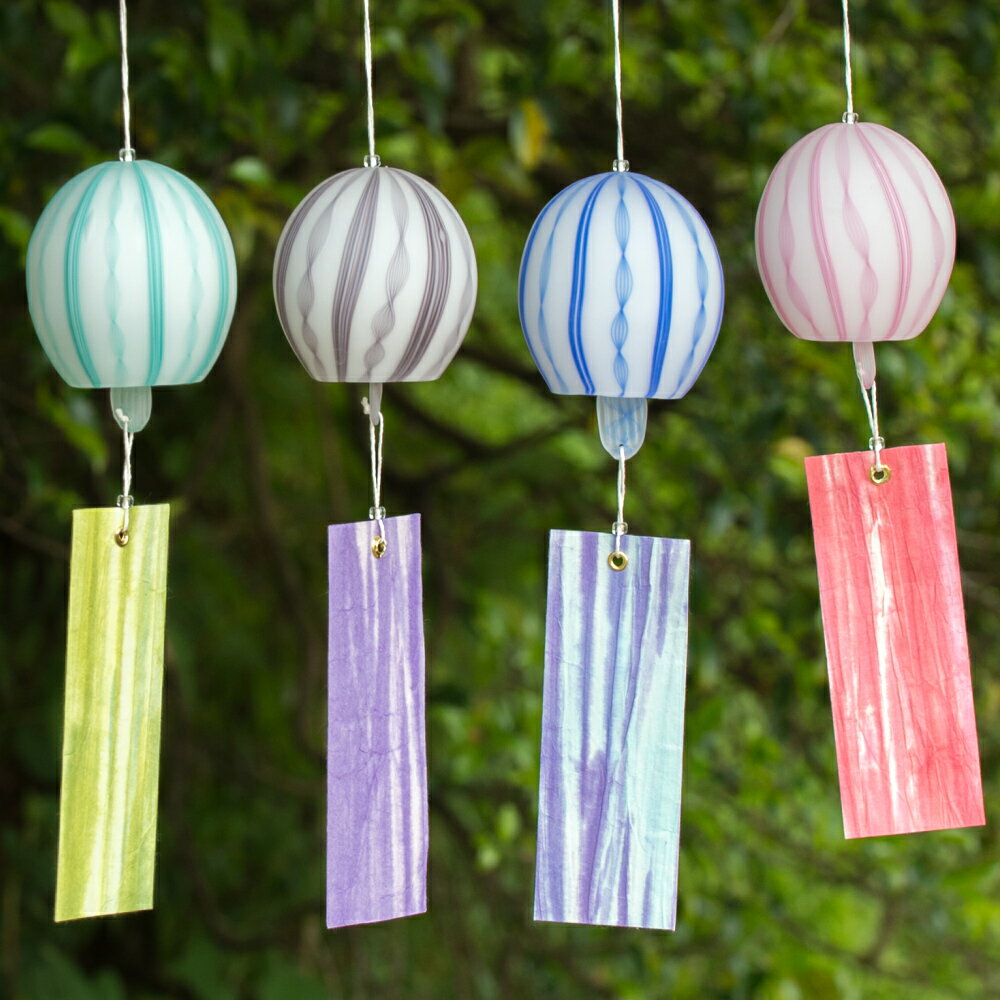 商品説明サイズ■本体/直径約7cmX高さ約7.5cm 短冊/縦約14cmX横約5cm ■重量 120g前後■本体/ガラス、短冊/紙■電子レンジ×■食器洗浄機× ※ガラスはひとつひとつ制作していますので色の発色を含め、形もサイズも微妙に違います。また、ガラスの中に気泡が入ったり、制作過程で道具で触った跡や、吹き竿を切り離した跡などが残る場合があります。当店では、これらのことを手作りのガラスの表情であり個性と捉えていますので、予めご了承ください。 ※短冊で使用している和紙につきましても手染めの和紙を使用しておりますのでロットごとに色目に差が生じることがあります。 産地■日本/静岡県ガラス作家 田崎亮介 商品説明日本の伝統工芸『組子』にヒントを得て作られた風鈴です。 『組子』は昔から身近なデザインに取り入れられており、多くの願いが込められていたといわれます。代表的なデザインで麻をモチーフにしたものは、葉が真っ直ぐに成長することから子供が元気に成長するようにとの願いが込められ、魔除けとしても用いられたそう。ほかにも健康祈願や子孫繁栄、無病息災といった、柄によって様々な意味を持つそうです。 そんな『組子文様』をヴェネチアンガラスのレース技法を用いて表現した繊細な風鈴は、ご自分用だけではなくご家族、ご友人、大切な方に贈る縁起物のギフトとしても使っていただけるようにと、ガラス作家がひとつひとつ丁寧に制作しています。 手作りのため、仕上がり、音色がどれも異なり、それぞれに個性があるので、どんな風鈴と出会うのかも楽しみのひとつ。 軒先に吊るす場所がない場合や、住環境の問題で屋外に飾ることができない場合には、夏のインテリアとして、卓上型のスタンドに風鈴を掛けて、室内で楽しんでいただくこともできます。夏の贈り物として、海外の方へのお土産・ギフトとしてもおすすめです。ご購入前にご確認下さいガラスは耐熱性ではございません。したがって熱湯や熱い料理等は製品を破損しますので、ご注意ください。1. 急激な温度変化に耐えられません熱湯、熱い料理、沢山の氷を一度に入れる、冷凍庫に入れる等の行為は、作品を破損させます。2. 手洗いと手拭きのすすめ食器洗浄機は熱湯、熱風による洗浄機能がありますので、お手入れには不向きです。3. 電子レンジの使用禁止急激に熱くなりますので、使用できません。4. 保管についてガラスはキズがつくと破損し易い性質があります。重ねたり、ガラス器同士など堅いものにぶつけたりしないように扱ってください。5. 定期的な洗浄のすすめガラス製品は長期間洗わないと、汚れが落ちにくくなったり、曇りがでてきたりします。適宜洗うようにしてください。日本の伝統工芸『組子』にヒントを得て作られた風鈴です。『組子』は昔から身近なデザインに取り入れられており、多くの願いが込められていたといわれます。代表的なデザインで麻をモチーフにしたものは、葉が真っ直ぐに成長することから子供が元気に成長するようにとの願いが込められ、魔除けとしても用いられたそう。ほかにも健康祈願や子孫繁栄、無病息災といった、柄によって様々な意味を持つそうです。そんな『組子文様』をヴェネチアンガラスのレース技法を用いて表現した繊細な風鈴は、ご自分用だけではなくご家族、ご友人、大切な方に贈る縁起物のギフトとしても使っていただけるようにと、ガラス作家がひとつひとつ丁寧に制作しています。手作りのため、仕上がり、音色がどれも異なり、それぞれに個性があるので、どんな風鈴と出会うのかも楽しみのひとつ。軒先に吊るす場所がない場合や、住環境の問題で屋外に飾ることができない場合には、夏のインテリアとして、卓上型のスタンドに風鈴を掛けて、室内で楽しんでいただくこともできます。夏の贈り物として、海外の方へのお土産・ギフトとしてもおすすめです。